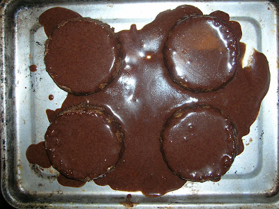 My confession - I didn't use a food processor. I killed mine a couple of months ago making pizza dough and haven't bought a replacement yet. I whirled the cookies and almonds in the mini-prep and then just used a regular hand mixer for the batter.