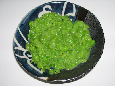 First, I'm reading James Joyce's Dubliners. In one of the chapters, The Gallants, a man feasts on "a plate of hot grocer's peas, seasoned with pepper and vinegar...He ate his food greedily and found it so good that he made a note of the shop mentally." This always happens to me - I read something that starts a craving! But who knows what hot grocer's peas are? An annotation in Dubliners says that grocer's peas are large, pale processed peas, closer to pease pudding than to fresh peas. Pease pudding (or pottage) is, as it turns out, a thicker pea mash, and the ancestor of boiled peas. Regardless, I read "hot grocer's peas" and thought...mashed up green peas...yum.